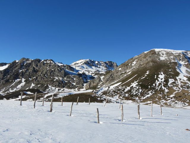 En este collado a (1864m), entre las Avanzadillas ( 1922 m ) y el Loma Palomo ( 2012 m ), sacamos esta foto de los Ubiñas, Fontanes y el largo valle de Congosto.